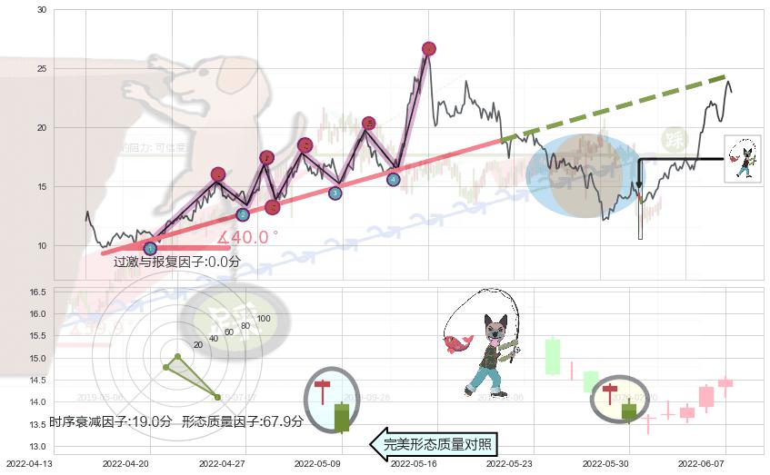 ➢ 🕰 价格走势在2022-04-25至2022-05-05期间形成底部尽头线(上山虎),残存影响值:1.47