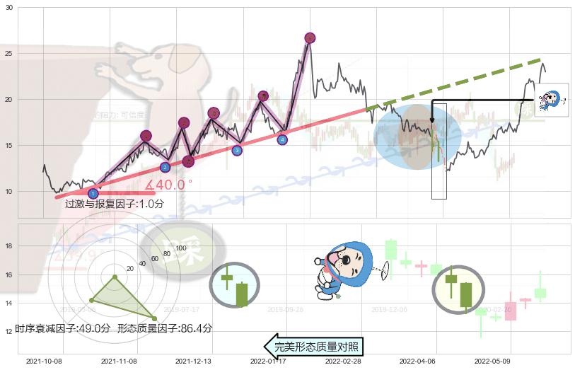 从2021-02-04至2022-01-20,共包含233个交易日,阶段股价上涨88.69%,阶段股价变动位移路程比: 1 : 6,上涨趋势角度: 40.0