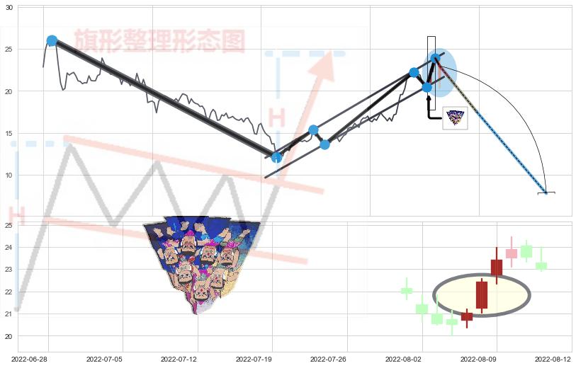 ➣ 【未确认突破,预测即将形成突破】升⚑旗形起点:2021-11-19, 预测突破点:2022-08-18,形态共183交易日
