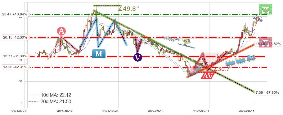 ♘ 阻力价格位25.47,可信任强度57.85%,距离最后交易2022-08-12形成的收盘价格22.98相差 +10.84%