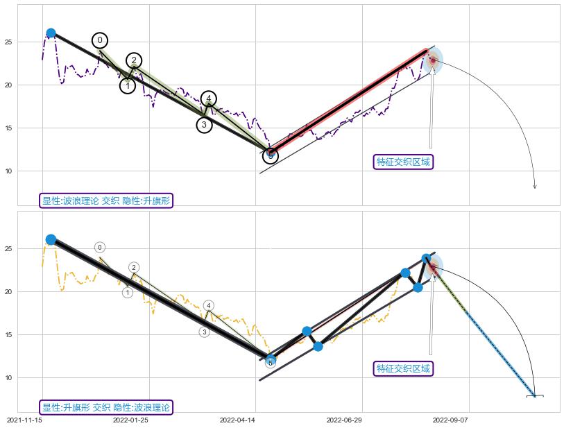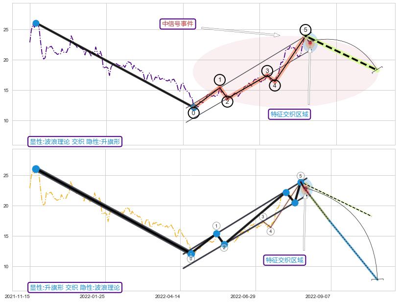 ➢ 波浪理论与升旗形信号事件周期长度级别相同,同周期信号事件