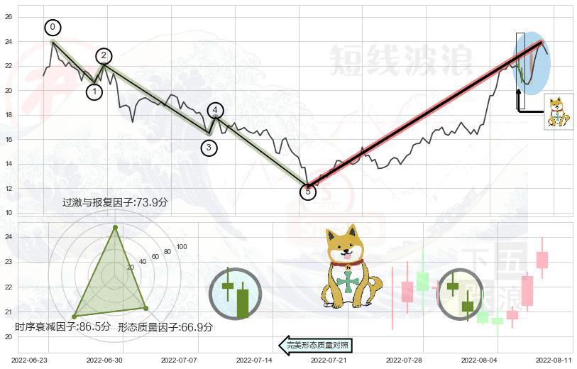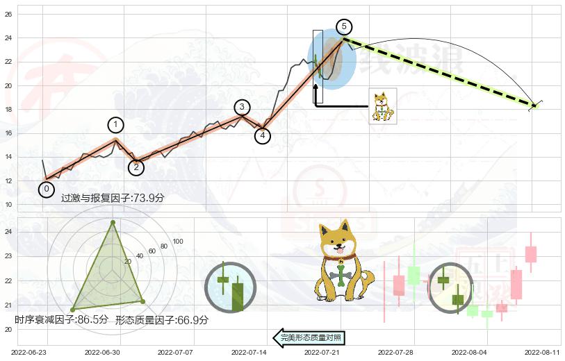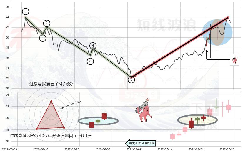 ➢ 看跌(高位倒锤头)流星线 🔜 波浪理论上涨浪:浪5回调拐点 综合量化分数:46.33 【中性】