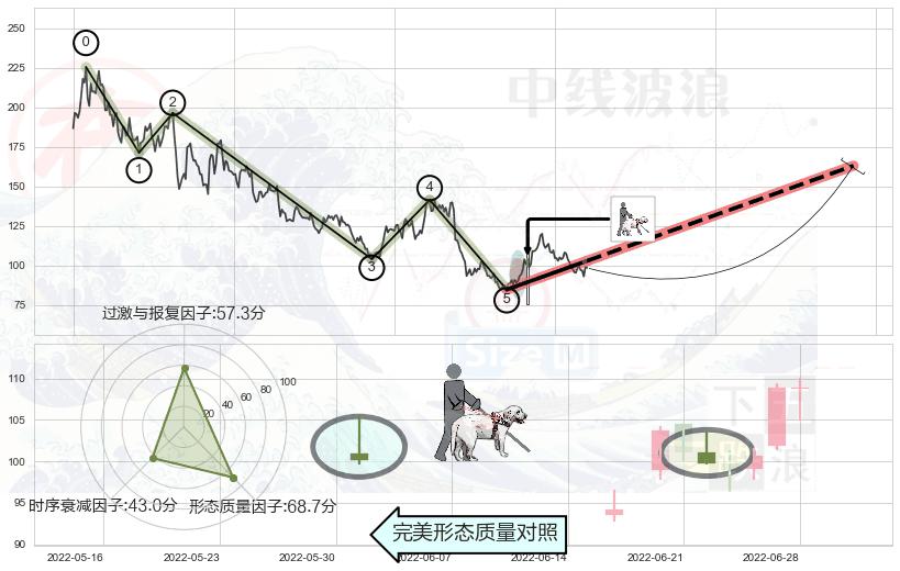 ➢ 曙光初现形态 🔜 波浪理论下跌浪:浪5反弹拐点 综合量化分数:53.15 【中性】