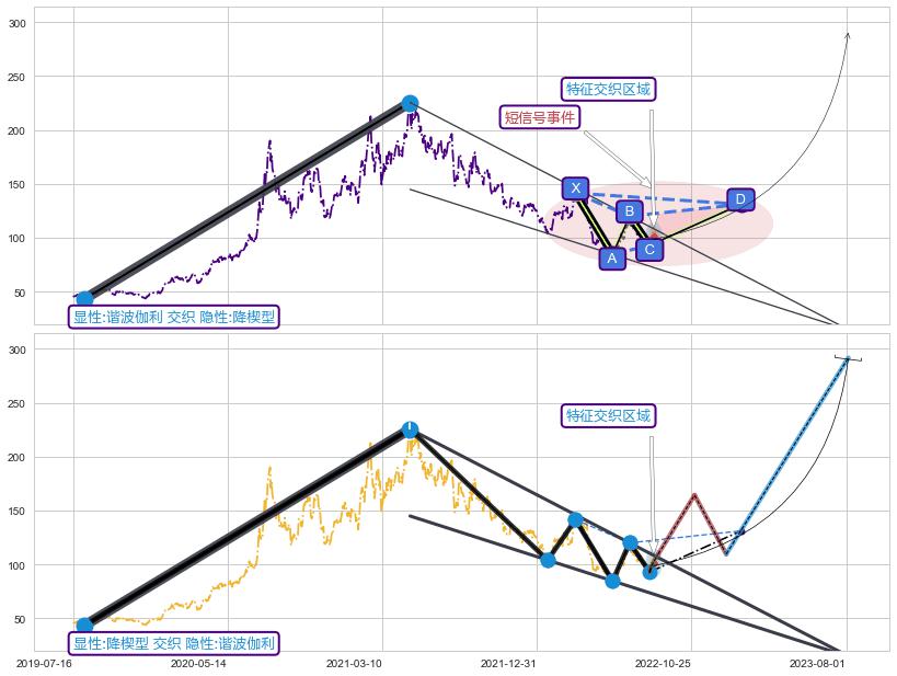 ➢ 谐波伽利属【短级别信号事件】降楔型属【长级别信号事件】长短周期组合信号事件, 短长事件长度比13.49%