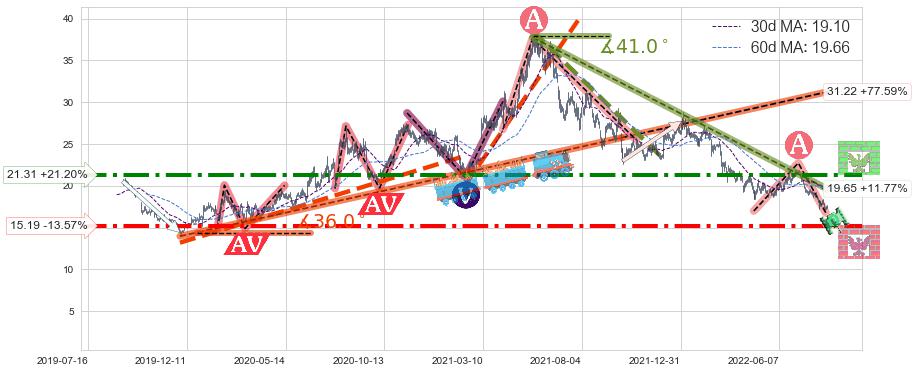 ♘ 阻力价格位21.31,可信任强度72.20%,距离最后交易2022-08-12形成的收盘价格17.58相差 +21.20%
