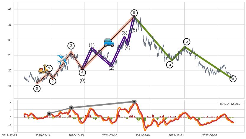 ➣ 波浪理论:猜想达到c点后小回调终止反转上涨 → 上涨 → 【拐点】临近 → 阶段均值回复结束后继续大周期趋势跟踪