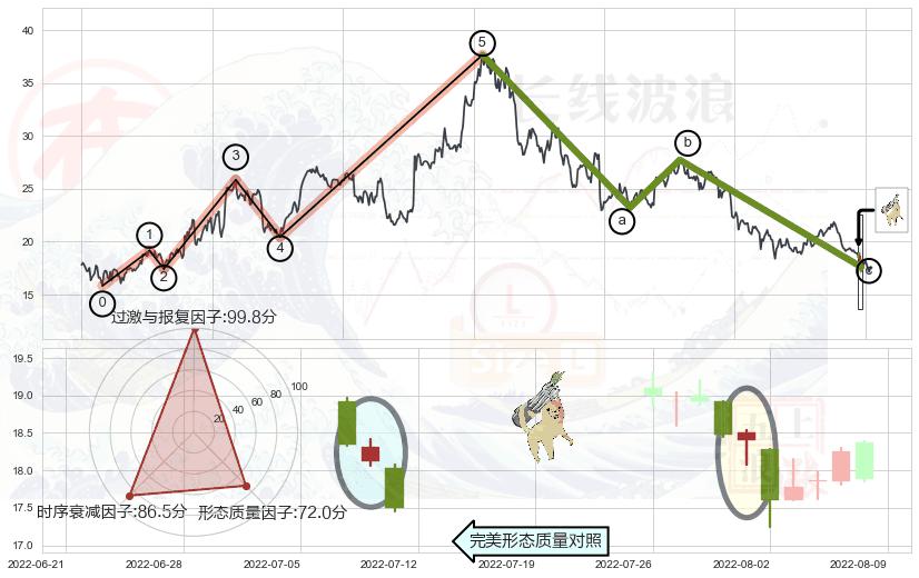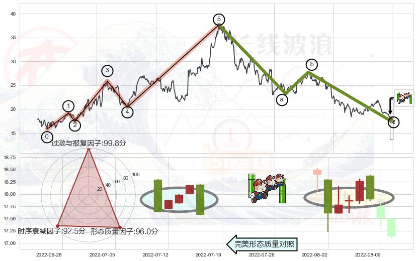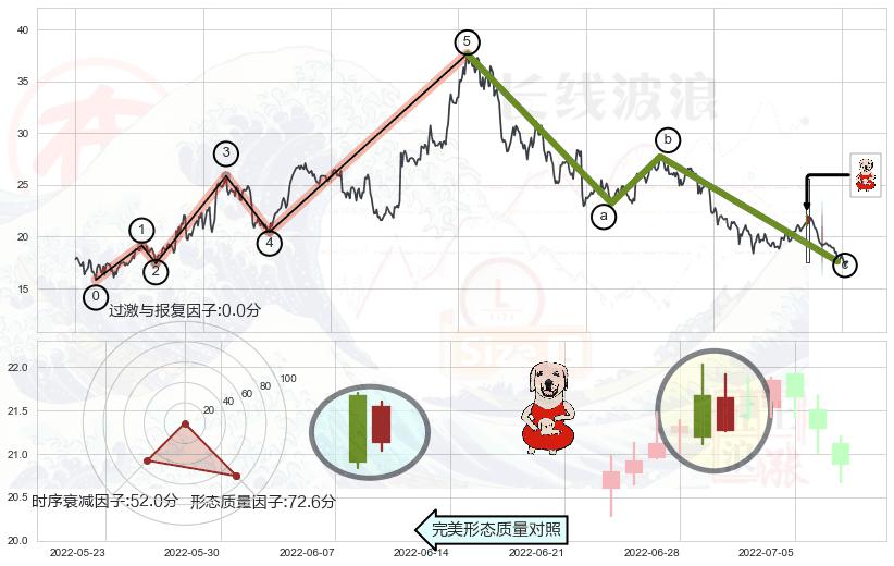 ➣ 顶部尽头线(下山虎) + 波浪理论击穿破位C点继续下跌信号叠加后【反向回撤率】偏高,【看空】信号叠加【存续影响降权】