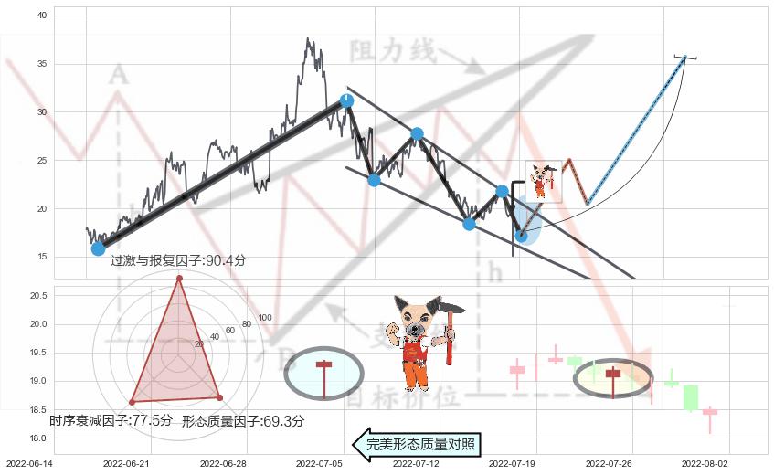 ➢ 🕰 价格走势在2022-07-25至2022-07-25期间形成锤头线(锤子线),残存影响值:6.69