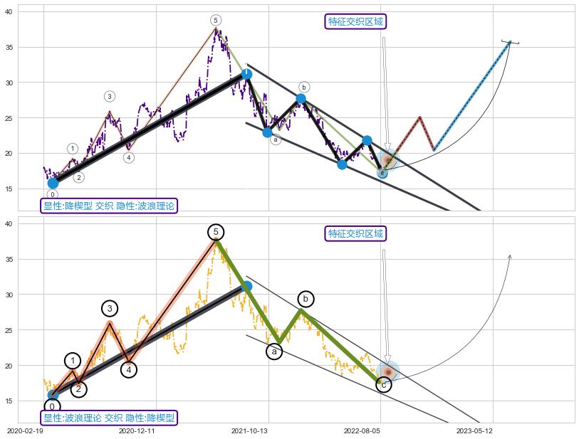 ➢ 下跌螺旋桨 + 波浪理论击穿破位C点继续下跌信号叠加后【信号初始稳固度】中等,【看空】信号叠加【可信度影响中等】