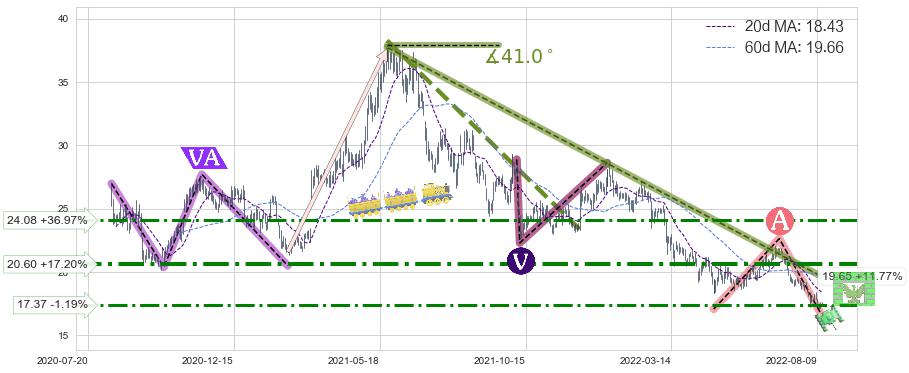 ♘ 阻力价格位24.08,可信任强度68.98%,距离最后交易2022-08-12形成的收盘价格17.58相差 +36.97%