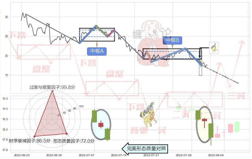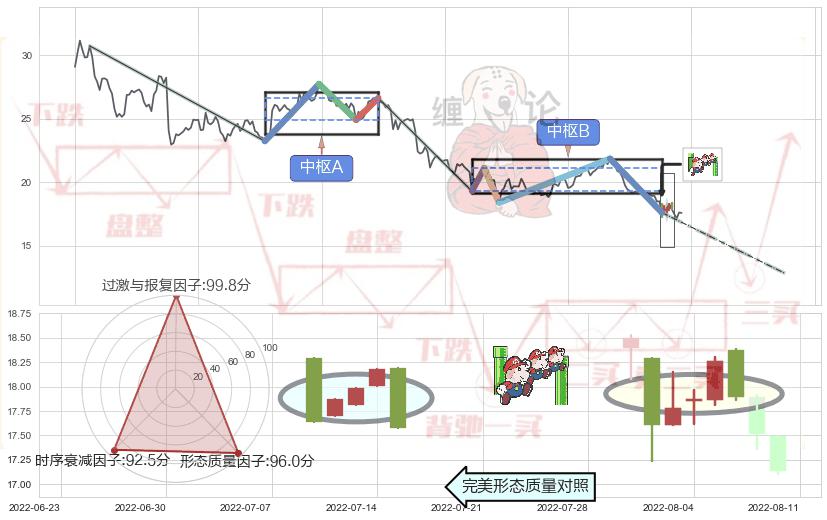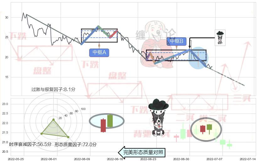 ➢ 射击之星形态 🔜 缠论中枢点破位中枢B支撑下拉 综合量化分数:43.05 【偏空】