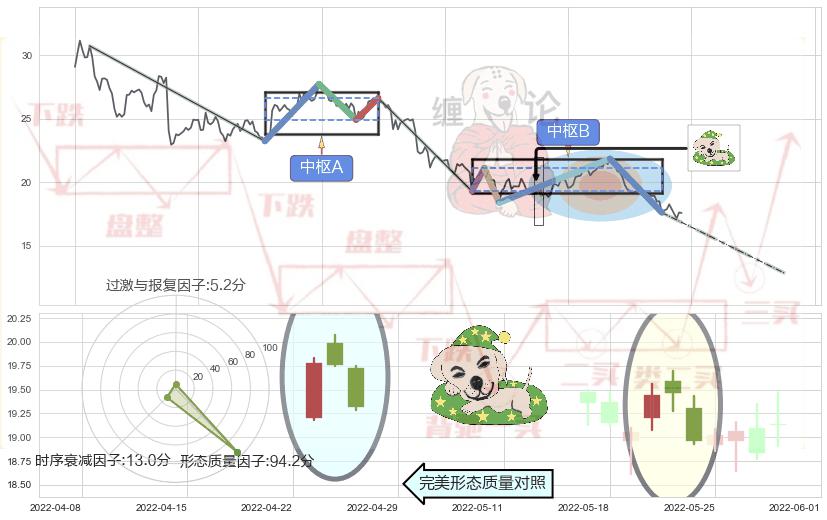 ➢ 下跌螺旋桨 🔜 缠论中枢点破位中枢B支撑下拉 综合量化分数:49.66 【中性】