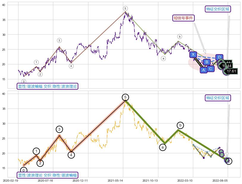 ➢ 谐波蝙蝠属【短级别信号事件】降楔型属【长级别信号事件】长短周期组合信号事件, 短长事件长度比12.88%