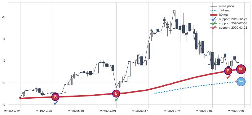 👍 尚未达到多条均线预测的最高波峰价格的平均值, 预期继续上涨