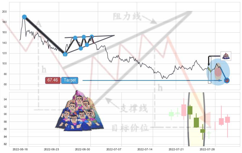 ➣ 【已确认突破】最后价格:91.96与最小【整理】第一目标价格→(2022-08-24: 67.46 )相较: 下跌空间【较小】