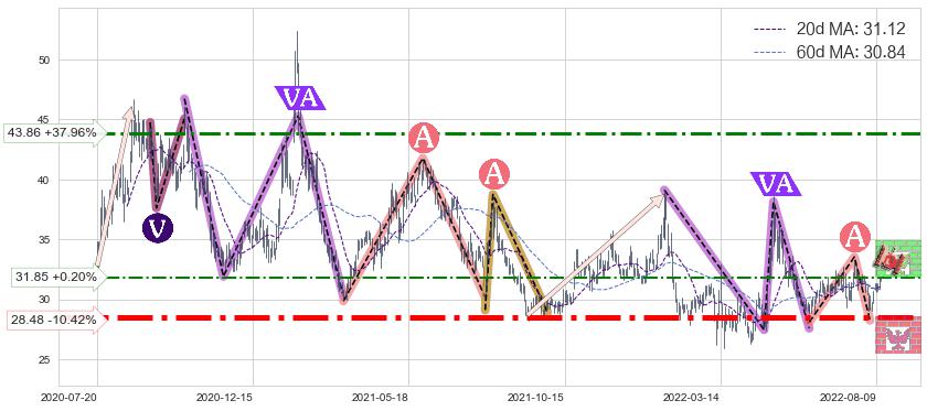 ♘ 阻力价格位31.85,可信任强度45.90%,距离最后交易2022-08-12形成的收盘价格31.79相差 +0.20%