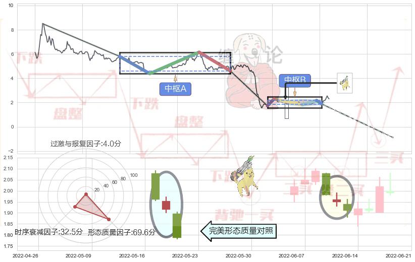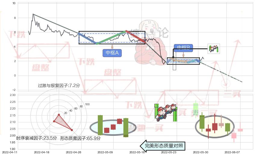 ➢ 下降三部曲(降势三鹤) 🔜 缠论中枢点破位中枢B支撑下拉 综合量化分数:47.19 【中性】