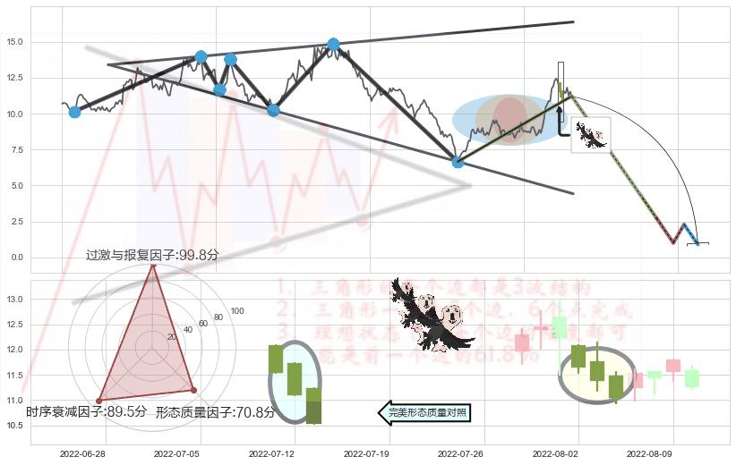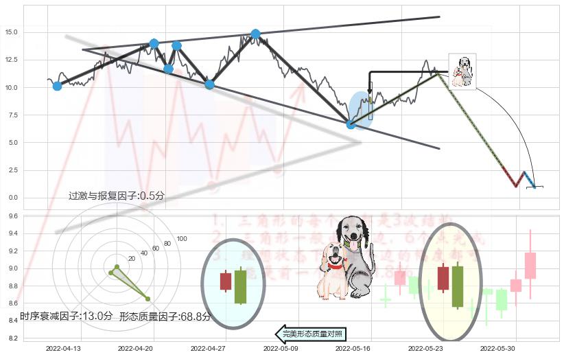 ➢ 下降插入线(坠落线) 🔜 扩散三角反转临近支撑猜想转换阻力下跌 综合量化分数:47.87 【中性】