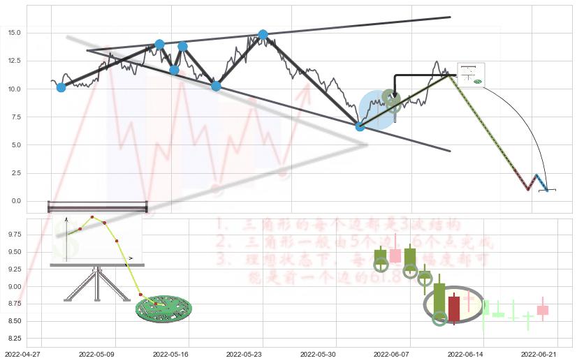 ➣ 扩散三角反转:猜想临近关键支撑位突破点 → 临近拐点下跌 → 风险信号 → 大趋势均值回复