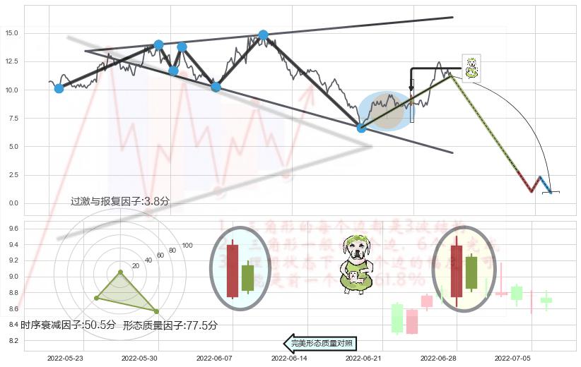 ➢ 下跌螺旋桨 + 扩散三角反转临近支撑猜想转换阻力下跌信号叠加后【反向回撤率】中等,【看空】信号叠加【存续影响中等】
