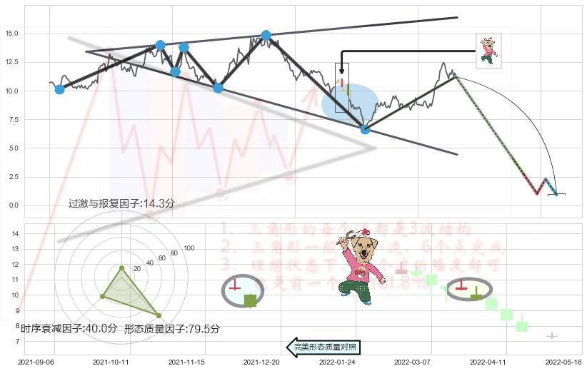 ➣ 【未确认突破,预测即将形成突破】【扩散】三角形反转起点:2021-04-15, 预测突破点:2022-04-26,形态共250交易日