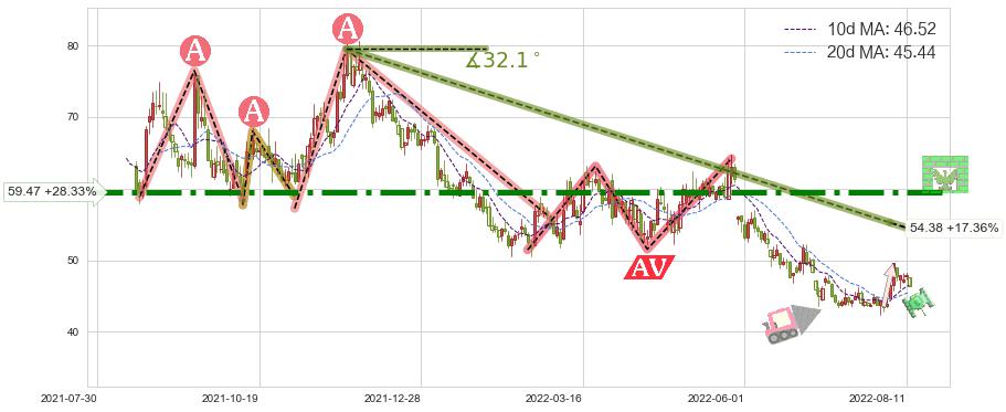 ➢ 【仅预测突破】最后价格:46.34与预测突破价格:51.17→【空间较大】后续最小【反转】第一目标价格→(2022-09-01: 56.87 )