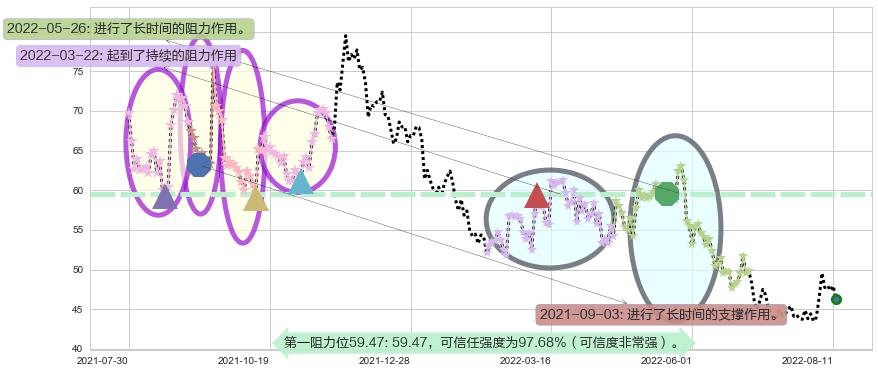 ♘ 阻力价格位59.47,可信任强度97.68%,距离最后交易2022-08-12形成的收盘价格46.34相差 +28.33%