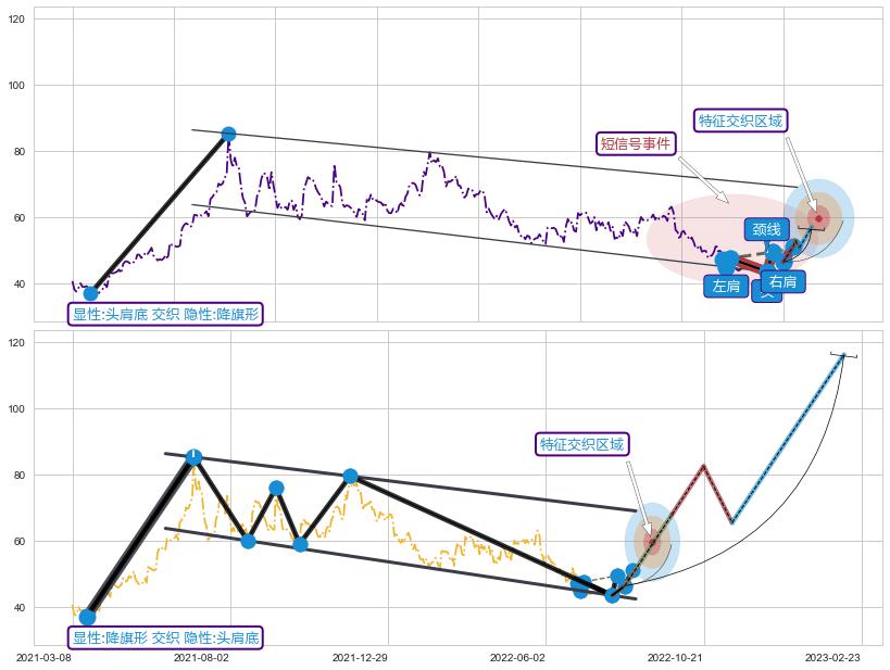 ➢ 头肩底属【短级别信号事件】降旗形属【长级别信号事件】长短周期组合信号事件, 短长事件长度比16.37%