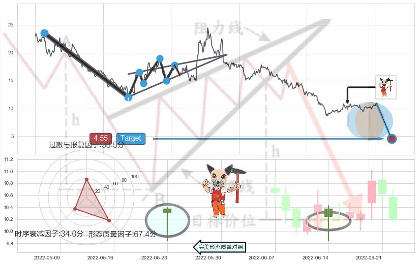 ➢ 🕰 价格走势在2022-06-14至2022-06-14期间形成锤头线(锤子线),残存影响值:3.61