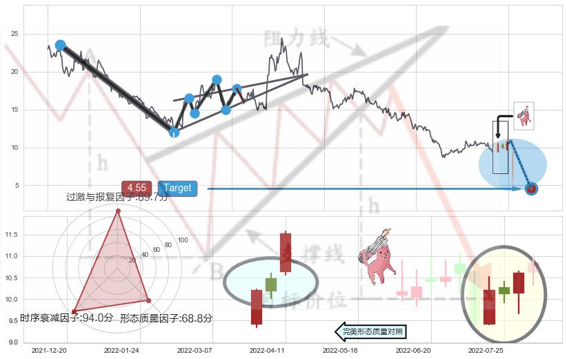 ➣ 【已确认突破】最后价格:10.85与最小【整理】第一目标价格→(2022-09-13: 4.55 )相较: 下跌空间【中等】