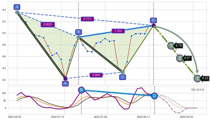 ➣ AI预测: 假定反转如期而至,第❷价格目标位置(2022-08-22, 8.57)