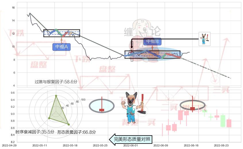 ➢ 下跌螺旋桨 🔜 缠论中枢点破位中枢B支撑下拉 综合量化分数:49.52 【中性】
