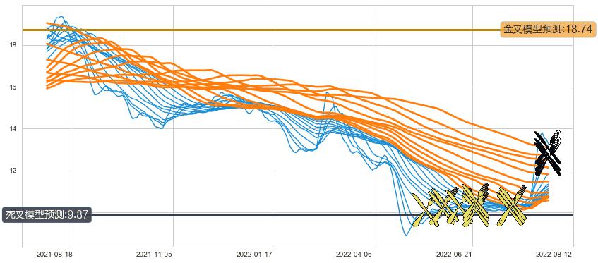 ➢ 10小时均线于(2022-08-11: 13.07)形成【死叉】基于【死叉历史模型】预测死叉后最低波谷价格: 11.58, 死叉后最低价格12.35,尚未达到预测最低波谷价格, 预期继续下跌