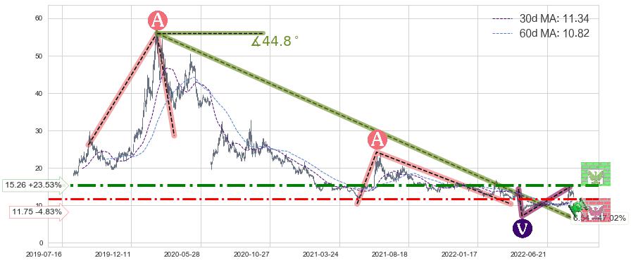 ♘ 阻力价格位15.26,可信任强度77.95%,距离最后交易2022-08-12形成的收盘价格12.35相差 +23.53%