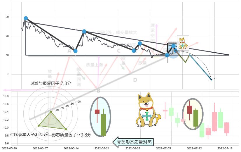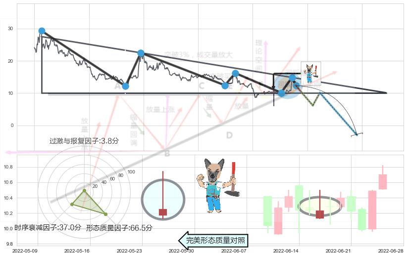 ➢ 看跌(高位倒锤头)流星线 🔜 下降三角整理临近支撑猜想转换阻力下跌 综合量化分数:47.00 【中性】