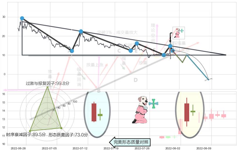 ➢ AI智能: 预测【多空防线逐步靠近→双方接火→空方占优】下降三角形中继整理向下突破,预测将在2022-08-29突破颈线, 演变成下降通道