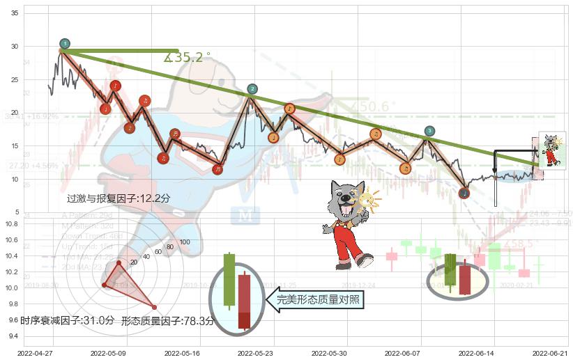 ➢ 2020-09-09-2022-06-27下跌趋势存在反转上涨[机会],虽然原下跌趋势的阻力位(11.98)已被突破,但其阻力效果尚存,原下跌趋势角度: 35.2˚