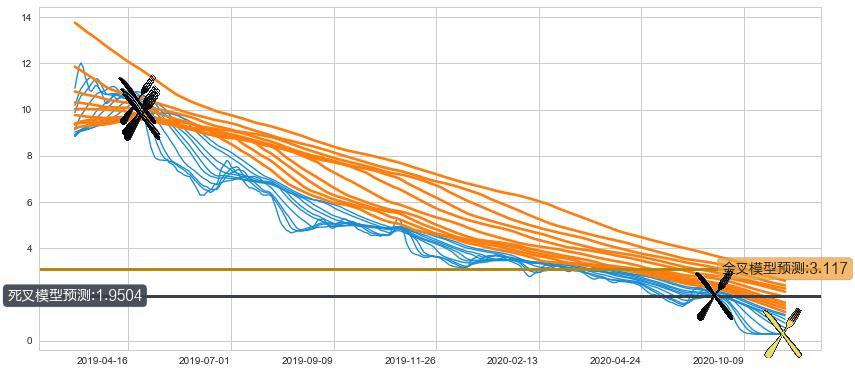 ➣ 70小时均线于(2019-04-24: 9.70)形成【死叉】基于【死叉历史模型】预测死叉后最低波谷价格: 7.58, 死叉后最低价格0.28000,已经下跌超出预测最低波谷价格, 预期反弹