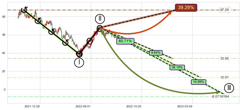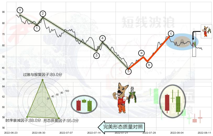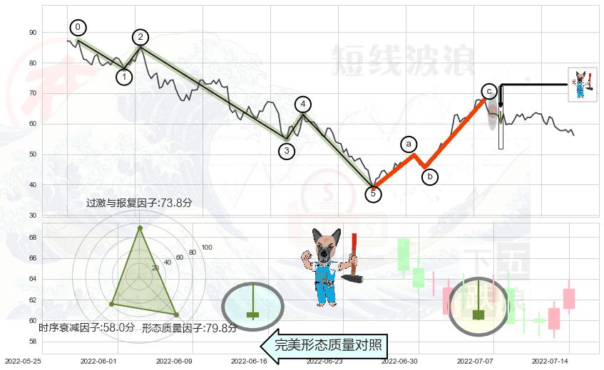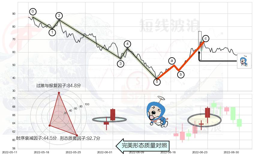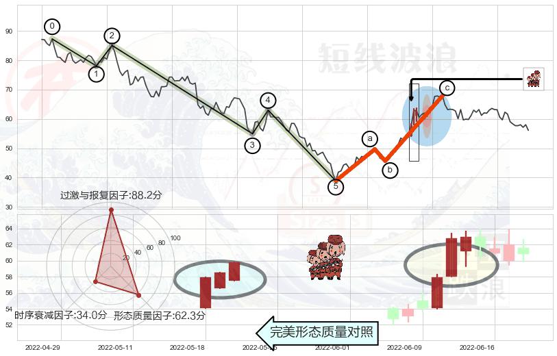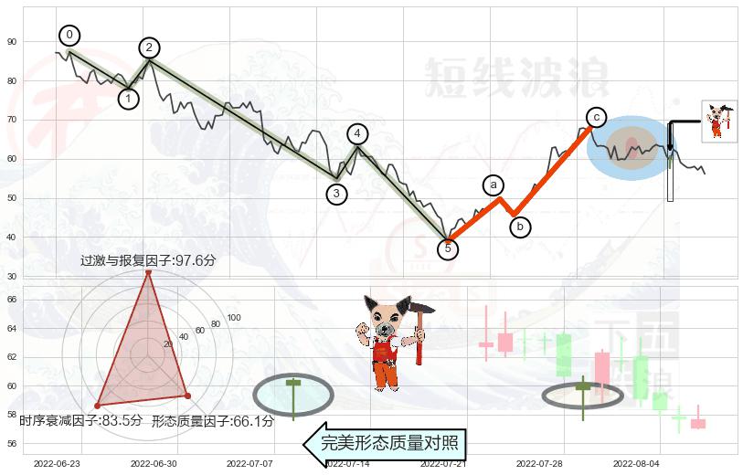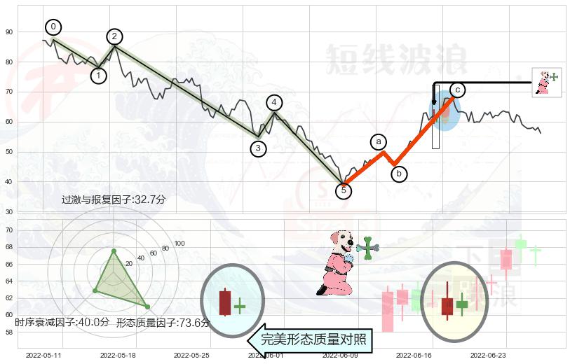 ➣ 看跌(高位倒锤头)流星线 + 波浪理论c点反弹终止反转下跌信号叠加后【反向回撤率】中等,【看空】信号叠加【存续影响中等】