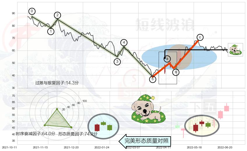➢ 黄昏之星(夜星) 🔜 波浪理论c点反弹终止反转下跌 综合量化分数:49.37 【中性】