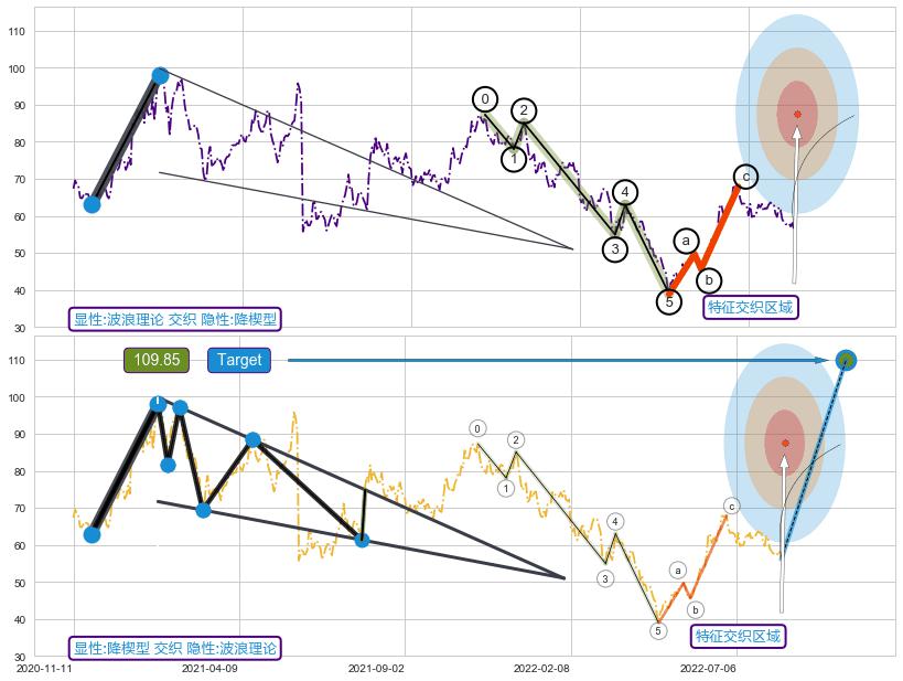 ➢ 波浪理论与降楔型信号事件周期长度级别相同,同周期信号事件
