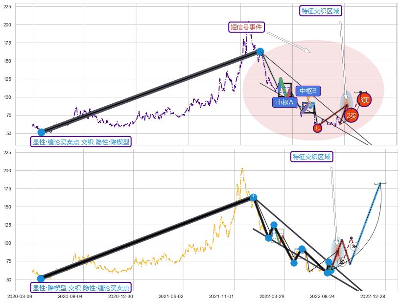 ➣ 缠论买卖点:下降缠:猜想2买趋势延续,蓄力上涨至3买(大周期趋势均值回复中的小周期趋势跟踪)