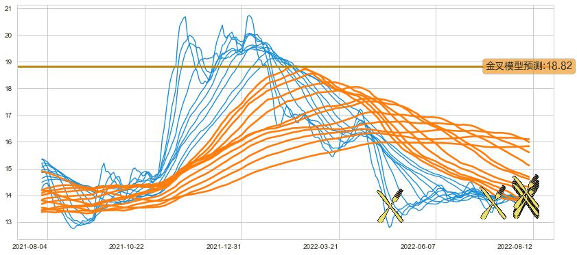 ➣ 40小时均线于(2022-08-10: 13.87)形成【金叉】基于【金叉历史模型】预测金叉后最高波峰价格: 18.57, 金叉后最高价格14.23,尚未达到预测最高波峰价格, 预期继续上涨