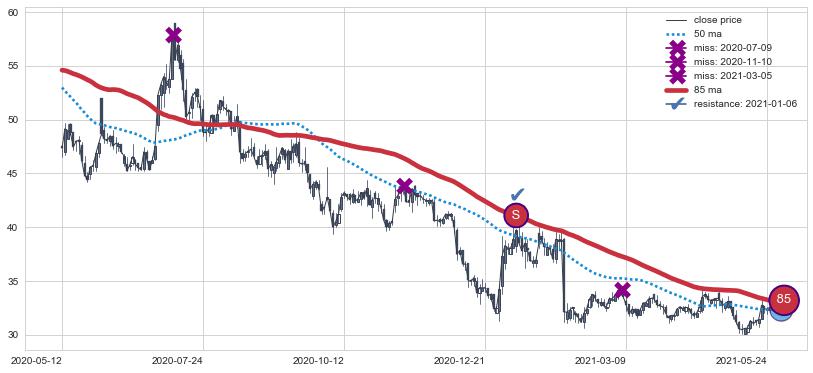 ➣ 80小时均线于(2022-07-13: 41.31)形成【金叉】基于【金叉历史模型】预测金叉后最高波峰价格: 55.31, 金叉后最高价格48.99,尚未达到预测最高波峰价格, 预期继续上涨