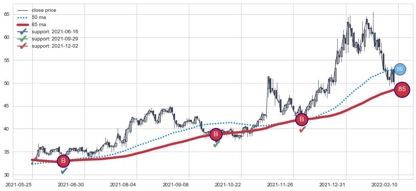 ➢ 85小时均线于(2022-07-13: 41.56)形成【金叉】基于【金叉历史模型】预测金叉后最高波峰价格: 55.88, 金叉后最高价格48.99,尚未达到预测最高波峰价格, 预期继续上涨