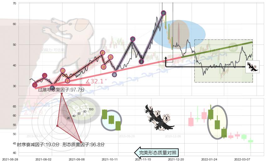 ➢ 2021-03-30-2022-03-07上升趋势存在反转[风险],其原上升趋势的支撑位(51.07)已破位[强阻力信号],原上升趋势角度: 32.1˚