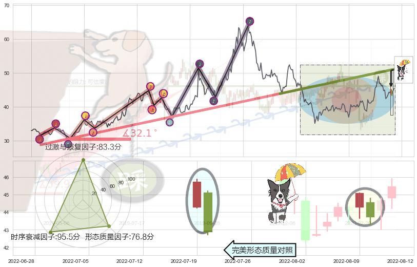 ♘ 支撑价格位33.92,可信任强度96.26%,距离最后交易2022-08-12形成的收盘价格45.46相差 -25.39%