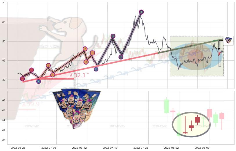 ♘ 阻力价格位59.51,可信任强度50.80%,距离最后交易2022-08-12形成的收盘价格45.46相差 +30.90%