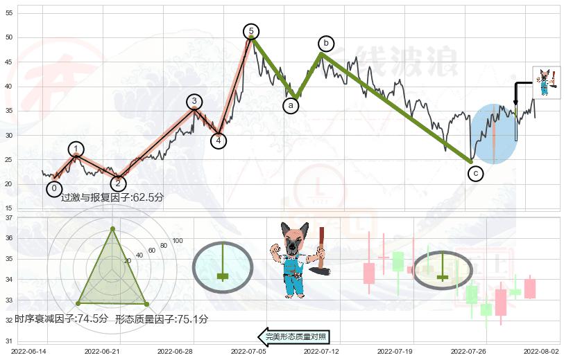 ➢ 上涨镊子线(U形磁铁) 🔜 波浪理论c点回调终止反转上涨 综合量化分数:54.26 【偏多】