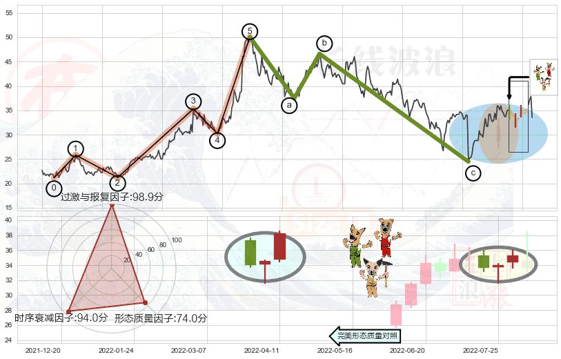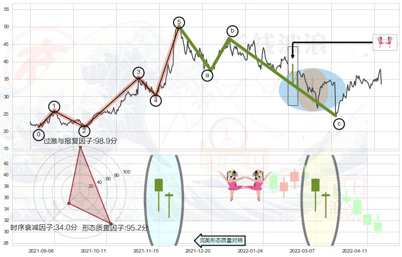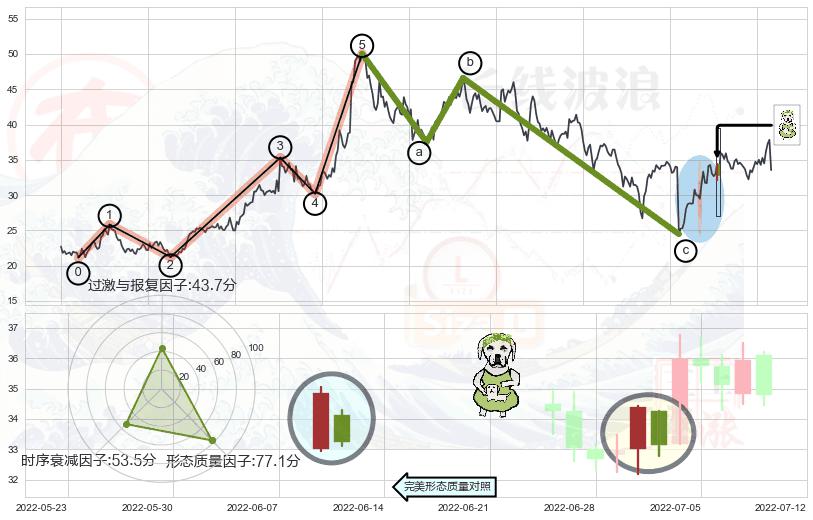 ➢ 看跌(高位倒锤头)流星线 🔜 波浪理论击穿破位C点继续下跌 综合量化分数:43.29 【偏空】
